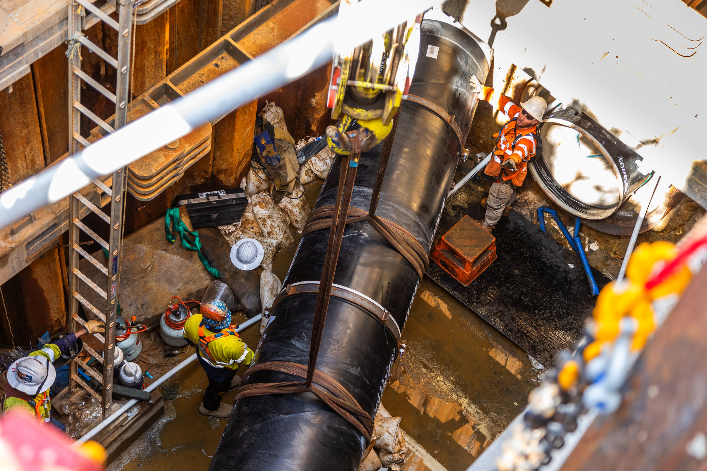 The crossing required precise engineering and advanced shoring solutions to ensure the pipeline’s stability and integrity while being installed beneath the river. Shore Hire provided specialized equipment and expertise to support the safe and efficient execution of this critical section of the project.