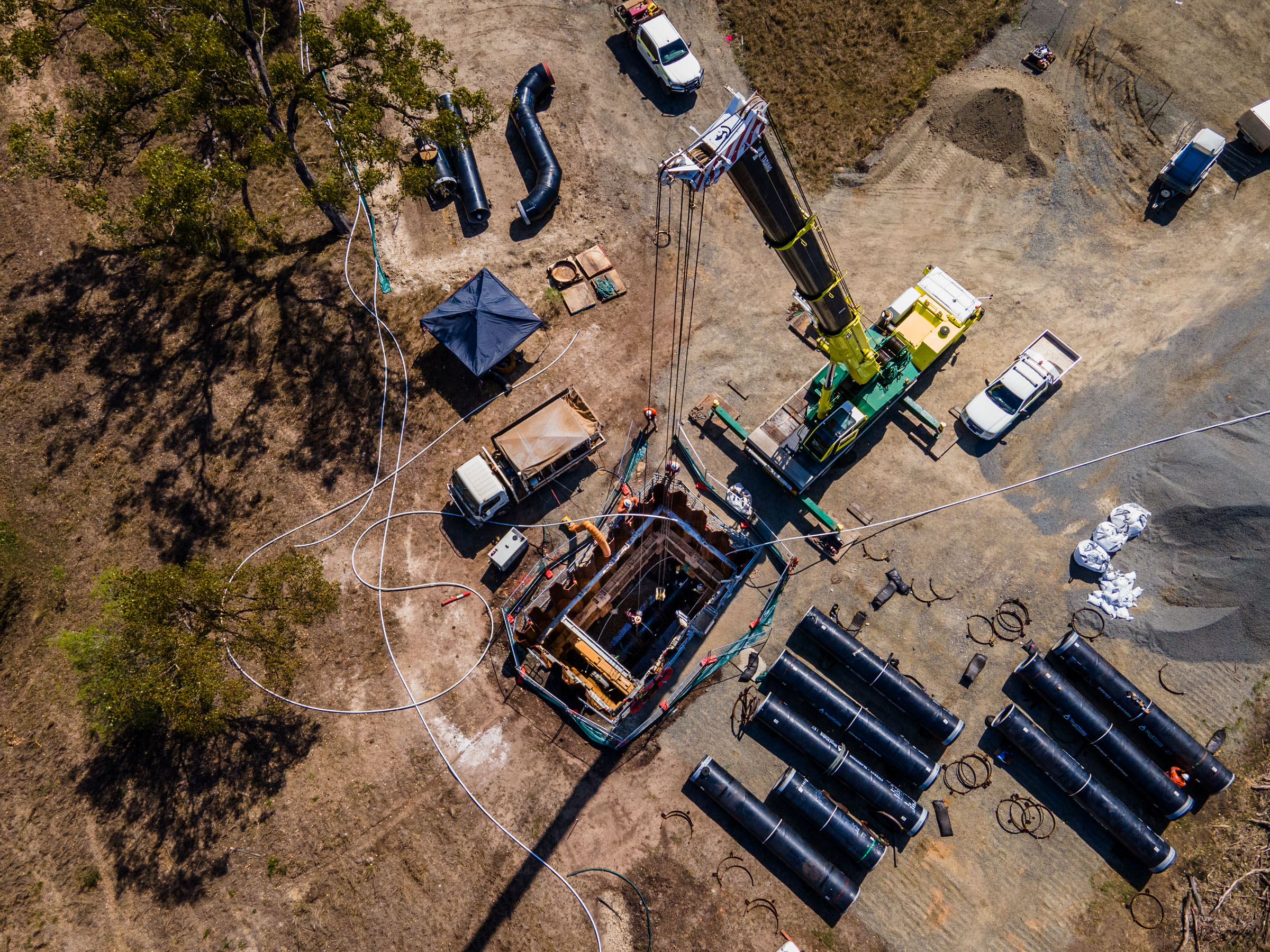 Shore Hire recently played a crucial role in the installation of an 86-metre pipeline beneath 12 Mile Creek, a key waterway between Rockhampton and Gladstone in regional Queensland. This installation is one of 12 crossings along the Gladstone-Pittwater 132km pipeline, a major infrastructure project designed to enhance water distribution and reliability in the region.